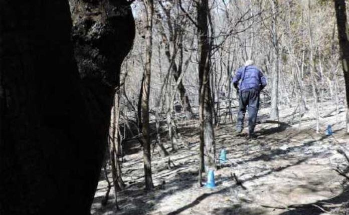 El punto de inicio del incendio se localizó en la base de una pitra, un árbol nativo con daños profundos por fuego