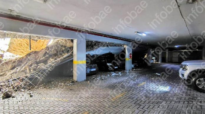 El estacionamiento subterráneo del edificio con presenta graves daños tras un colapso estructural