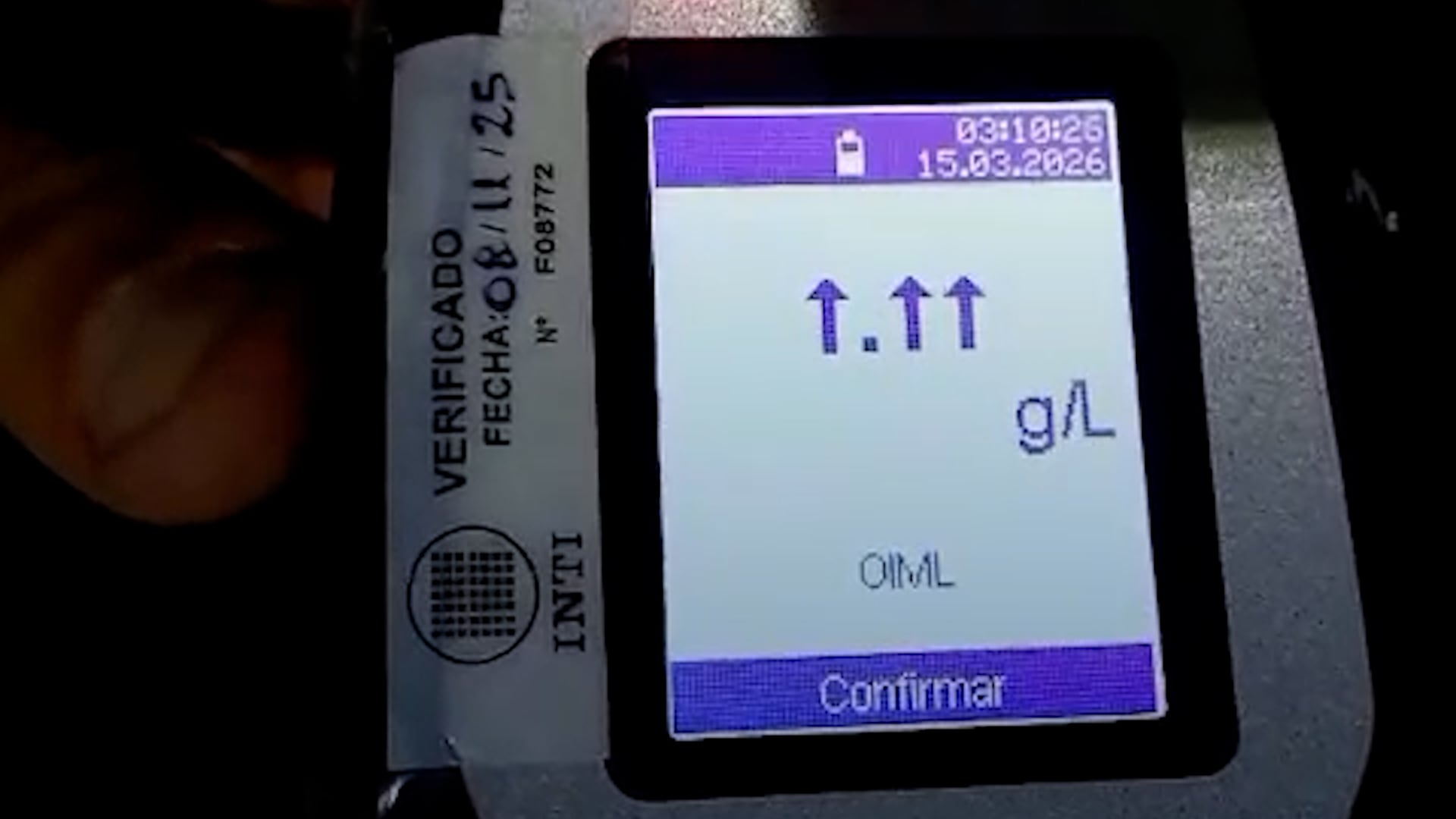 En ese instante, al efectuarse el test, la pipeta marcó 2,26 gramos de alcohol por litro de sangre. Frente a este panorama, los agentes procedieron a retenerle la licencia y a impedirle que continuara conduciendo. El hombre quedó a la espera de que una persona autorizada retirara el automóvil y fue puesto a disposición del Juzgado de Faltas correspondiente.