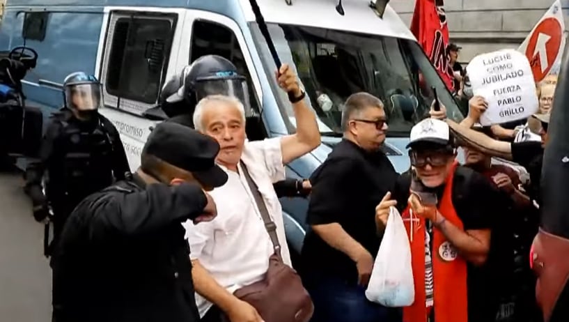 La marcha de jubilados que se realiza cada miércoles alrededor del Congreso comenzó un par de horas antes de lo habitual y registró incidentes entre los manifestantes, la mayoría adultos mayores, y la policía federal que aplicó con firmeza el protocolo antipiquetes. En las imágenes que entregaron los móviles de televisión en el lugar mostraron cómo efectivos empujaron bruscamente a algunos de los integrantes de la movilización cuando estos quisieron descender de la vereda a la calle para seguir la protesta. Como suele ocurrir, la situación generó tensión e intercambios de insultos entre quienes marchan y los integrantes del operativo.