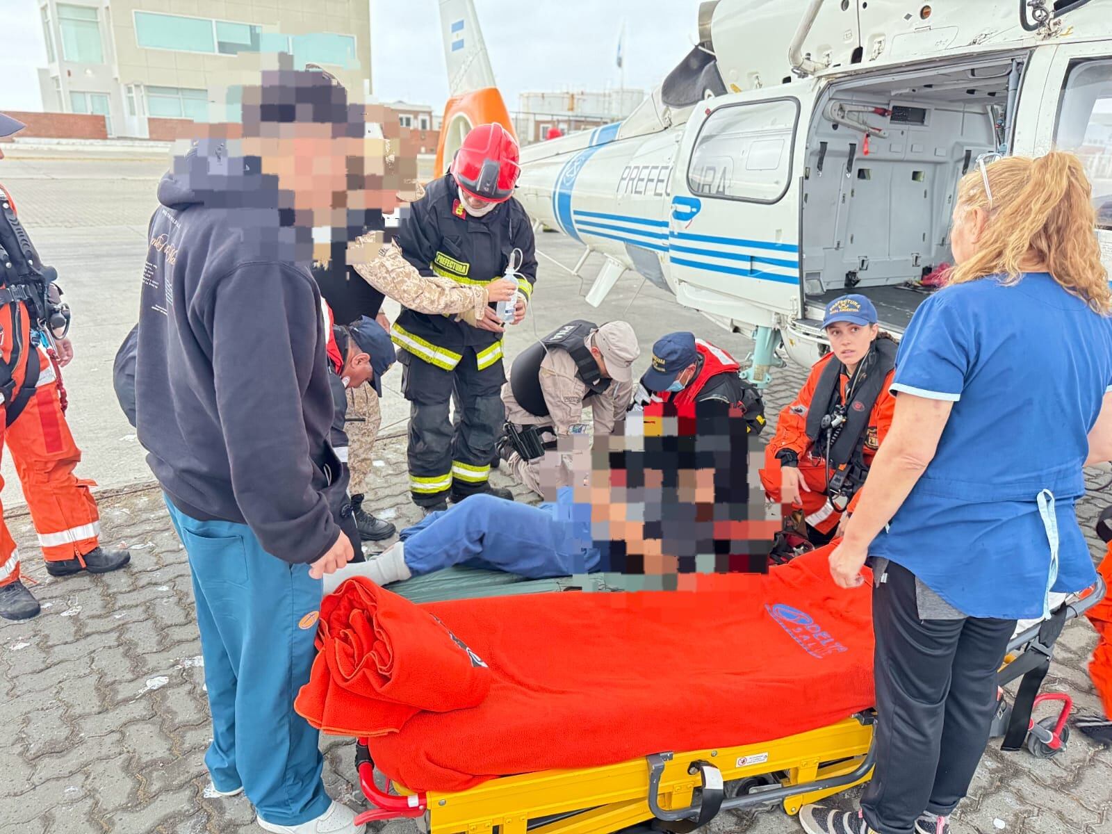 El despliegue aéreo se organizó desde la estación de la Prefectura en Comodoro Rivadavia. Un helicóptero, con personal entrenado en rescates y un profesional sanitario a bordo, despegó rumbo al punto de encuentro, mientras un avión de apoyo acompañó la maniobra.