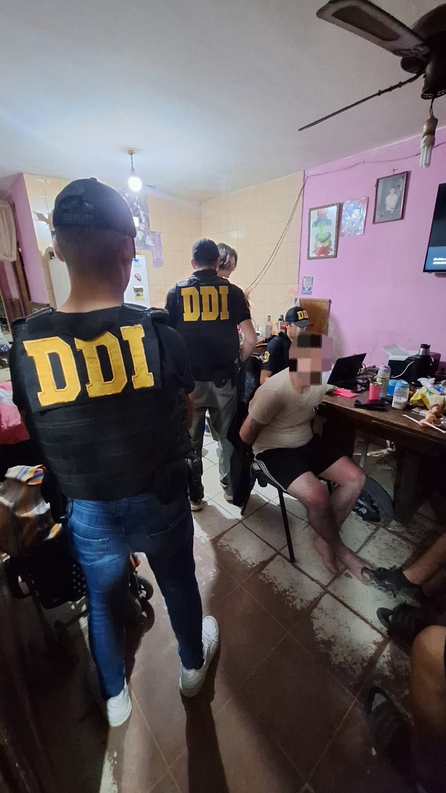La fiscalía emitió la orden correspondiente para allanar la vivienda en busca del presunto autor y de la motocicleta. El operativo policial permitió secuestrar doce envoltorios de clorhidrato de cocaína, con un peso total de 2,51 gramos, además de $311.000 en efectivo y nueve teléfonos celulares.