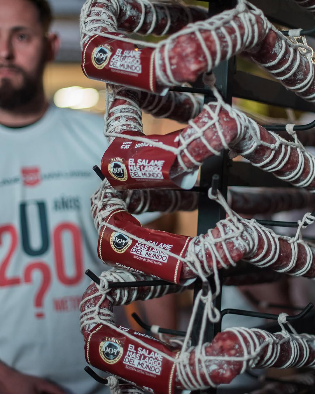 Sin embargo, en agosto de este año, San Andrés de Giles, al noroeste bonaerense, se apoderó del récord. La fiambrería local Chacinados La Vasquita realizó un salame de 469,18 metros.