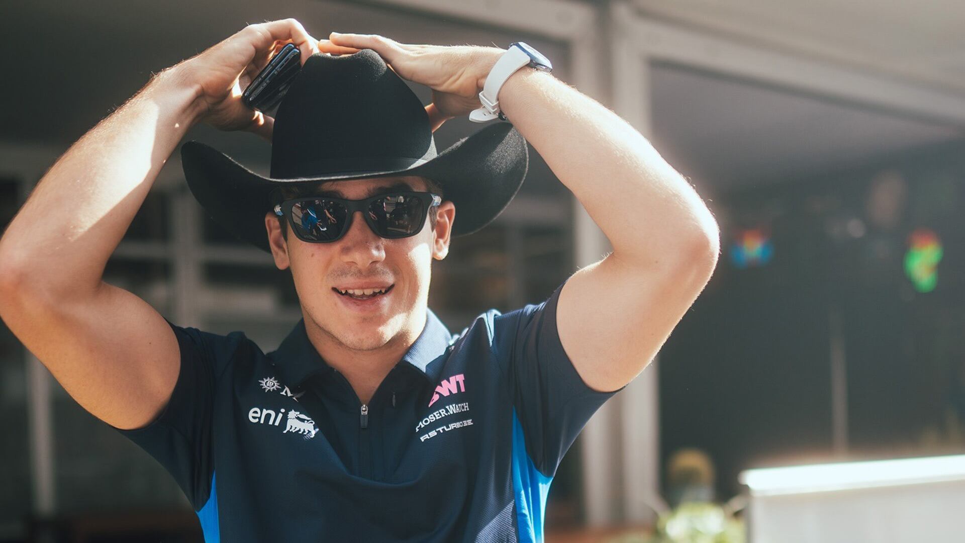 Franco Colapinto sonríe con un sombre de cowboy. Tiene motivos: su sponsor principal tendrá más presencia en su auto y es optimista de cara a su futuro en la F1 (@AlpineF1Team)