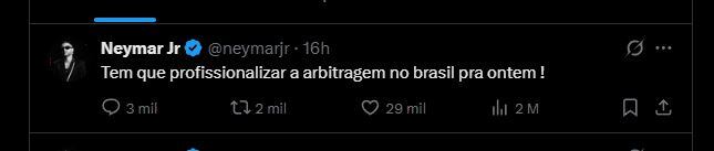 La actuación arbitral fue uno de los focos de la polémica. Y Ney expresó su descontento. “¡Tenemos que profesionalizar el arbitraje en Brasil, es para ayer!”, escribió la estrella internacional en referencia al desempeño del juez Rafael Rodrigo Klein. Esta declaración encendió el debate sobre la calidad del arbitraje en el fútbol brasileño y sumó presión en un momento delicado para el club.