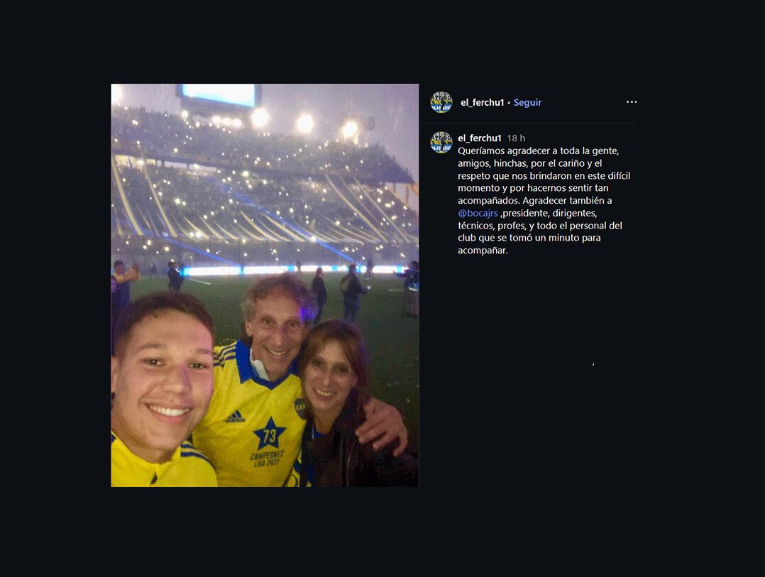 Entre las expresiones más significativas destaca el mensaje de agradecimiento que Fernando Gayoso publicó una foto junto con su esposa con un sentido mensaje. “Queríamos agradecer a toda la gente, amigos, hinchas, por el cariño y el respeto que nos brindaron en este difícil momento y por hacernos sentir tan acompañados. Agradecer también a Boca, su presidente, dirigentes, técnicos, profes, y todo el personal del club que se tomó un minuto para acompañar”, escribió en redes sociales.