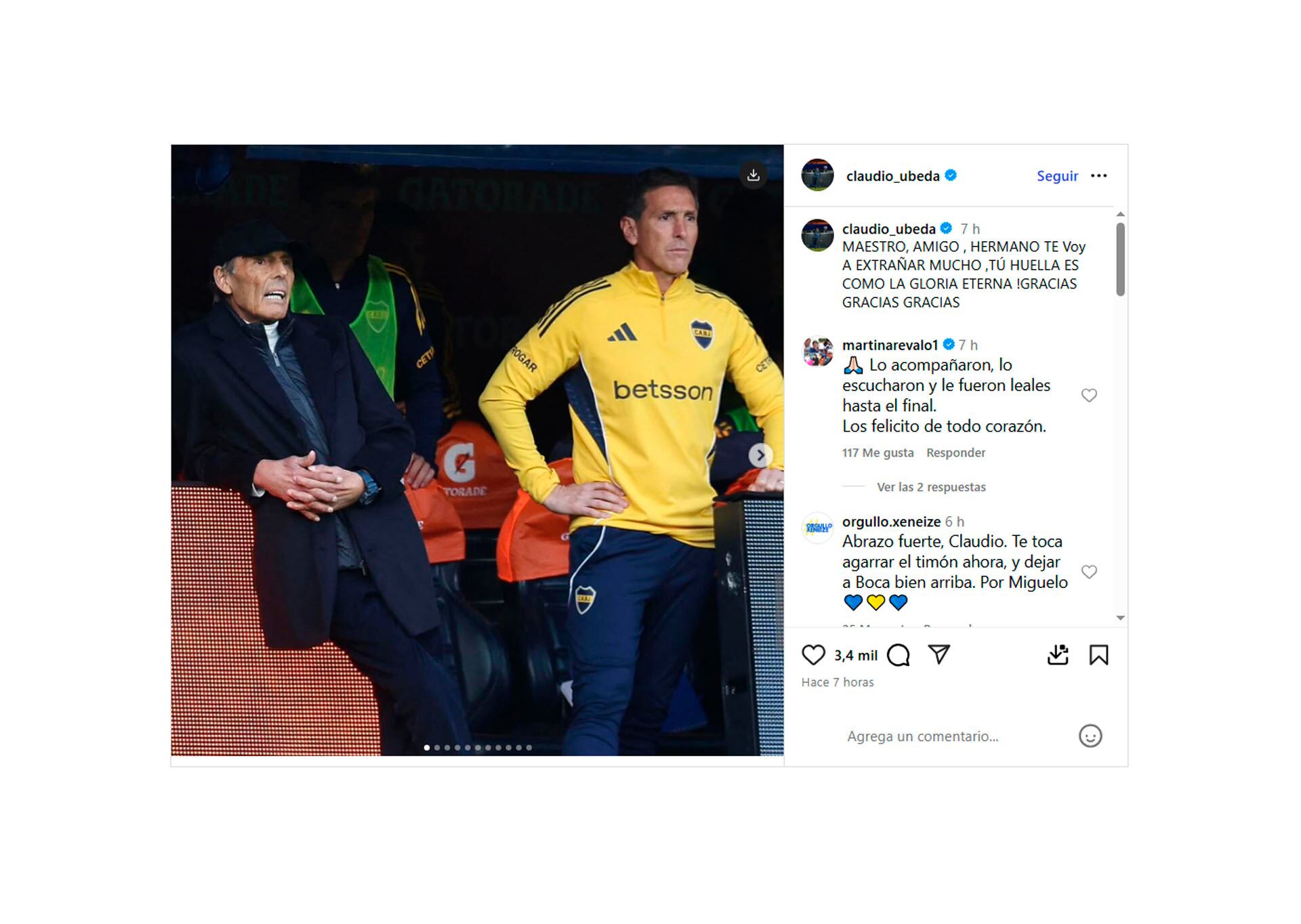 “Maestro, amigo, hermano, te voy a extrañar mucho. Tu huella es como la gloria eterna. Gracias, gracias, gracias”, fueron las palabras que eligió el asistente en su cuenta oficial de Instagram. Entre las fotos que eligió el Sifón aparecieron algunas de ellos dirigiendo en Boca Juniors, Rosario Central y Al Nassr de Arabia Saudita, pero también otras personales compartiendo distintos viajes.