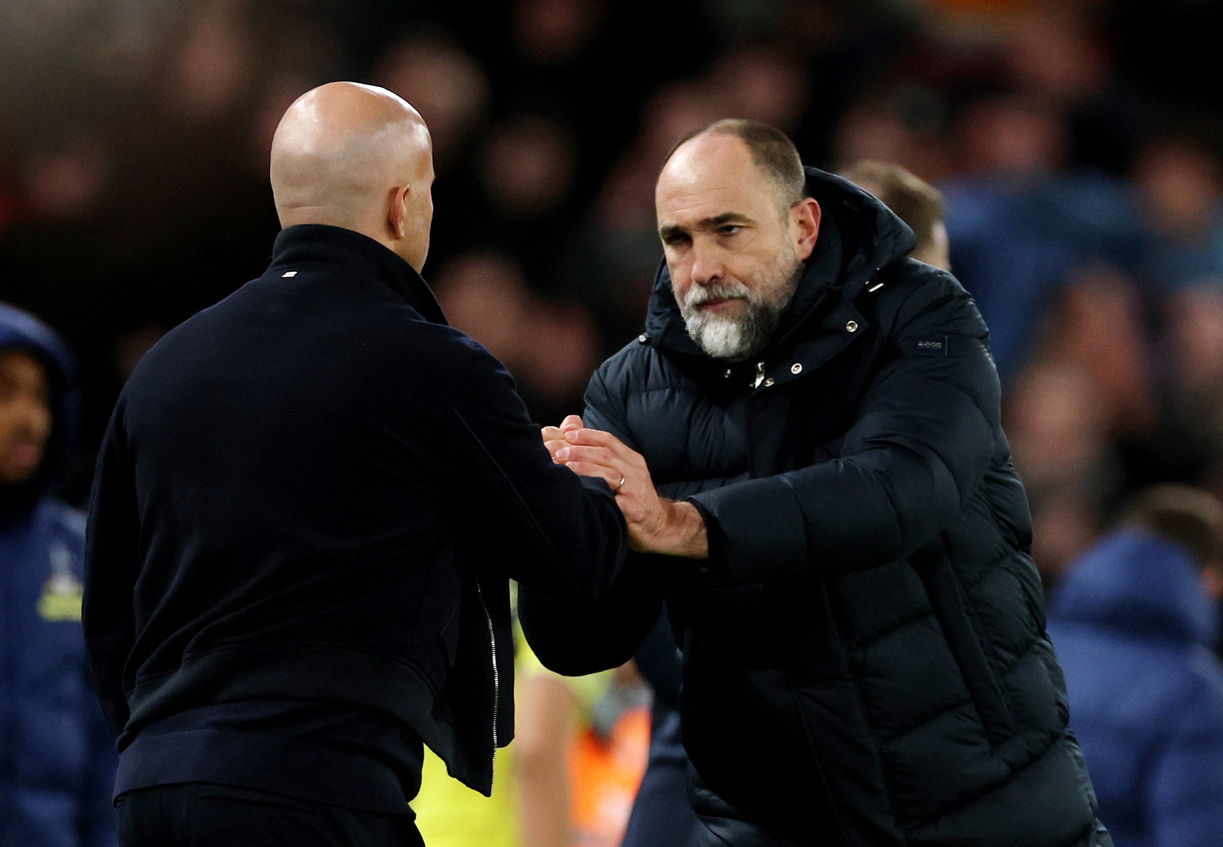 En la antesala del comienzo del partido entre Liverpool y Tottenham por la Premier League se vivió un particular momento que se hizo viral cuando el entrenador de la visita Igor Tudor fue a saludar al DT de los de Anfield Arne Slot, en un clásico gesto entre los técnicos en la previa del inicio de los partidos en el mundo del fútbol.