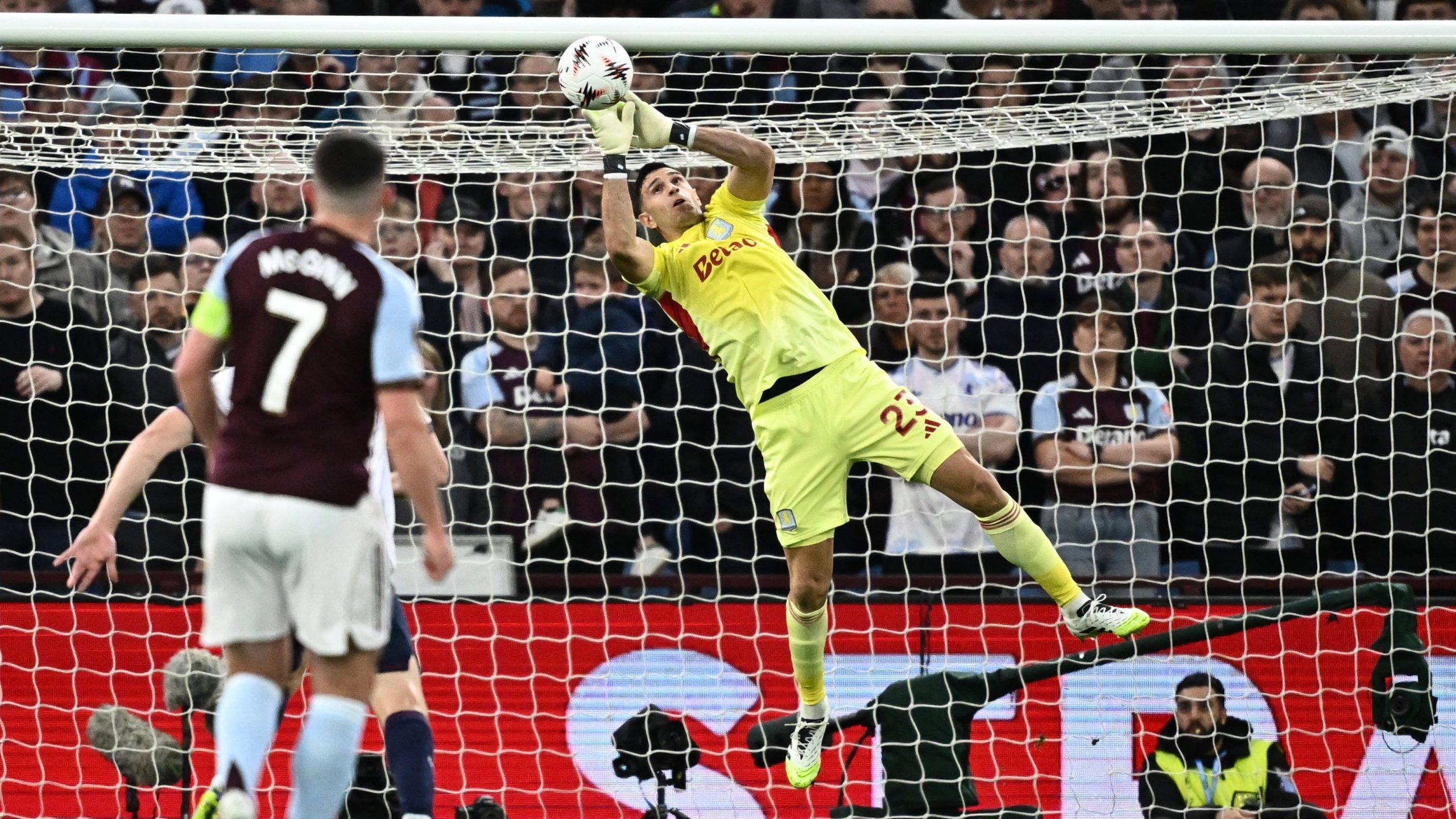 Las dos atajadas vitales del Dibu Martínez para la clasificación del Aston Villa a semifinales de la Europa League