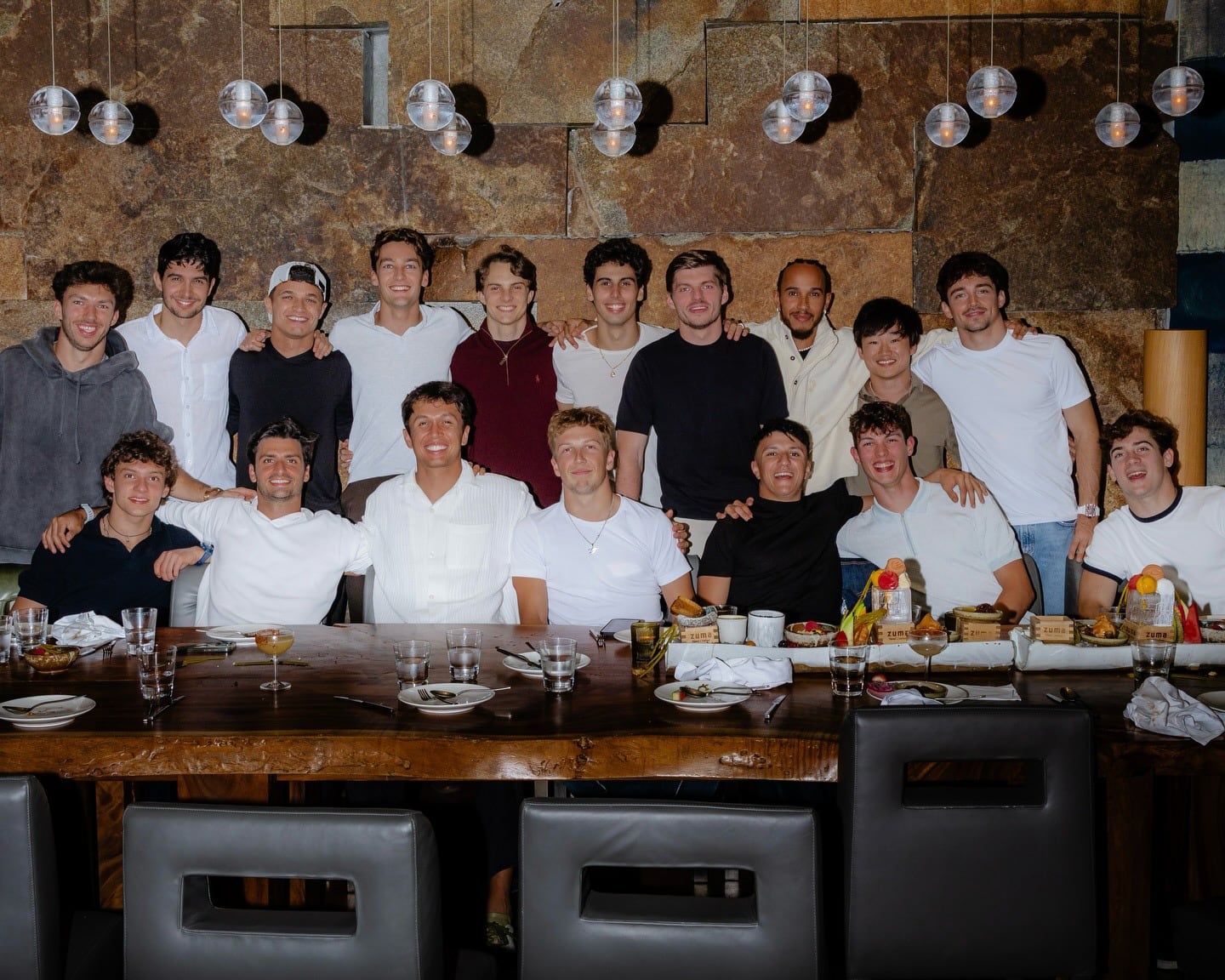 Otros pilotos, en cambio, optaron por publicar la imagen con un mensaje más específico, como fue el caso de George Russell: “Cena anual con los chicos”. El rookie de Mercedes Andrea Kimi Antonelli se mostró orgulloso de participar por primera vez. “Primera cena con los mejores del mundo”, comentó el italiano.