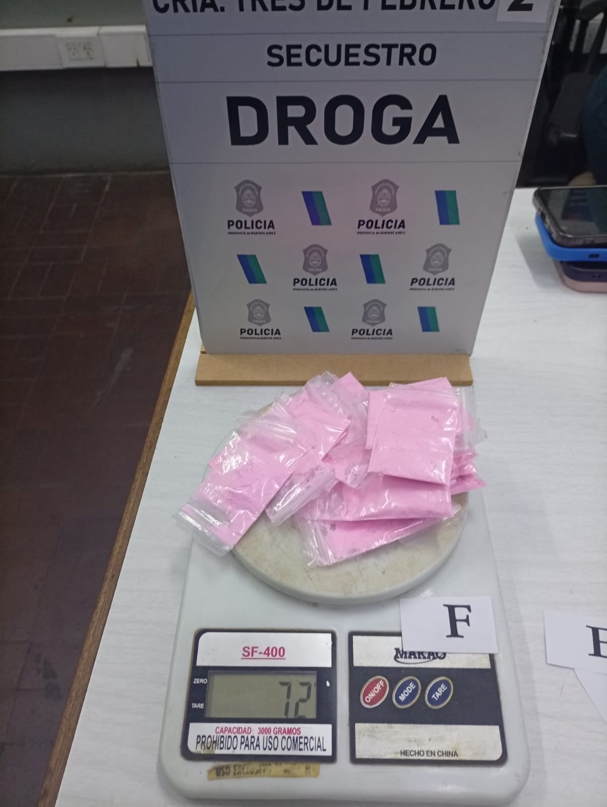 Durante la inspección, los efectivos hallaron un morral color verde debajo del asiento del conductor. Dentro del mismo se encontraron 117 envoltorios y 68 pastillas de una sustancia sintética tipo Tusi, con un pesaje total de 393 gramos. El Tusi, conocido habitualmente como “cocaína rosa”, es una droga sintética cuyo consumo ha registrado un aumento en contextos urbanos y fiestas electrónicas en los últimos años.
