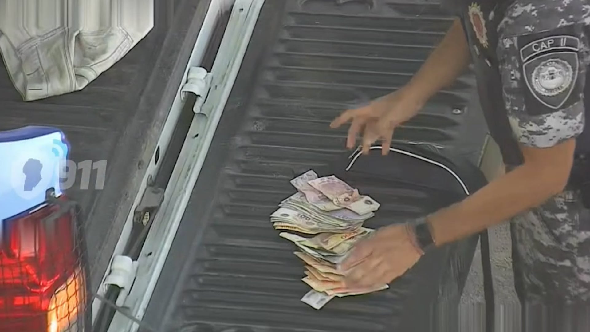 Es parte del protocolo de la fuerza de seguridad exhibir los elementos secuestrados en el momento ante las cámaras, cuyas imágenes visualizan en vivo desde el centro de monitoreo.