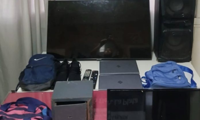 Durante los procedimientos, los agentes secuestraron un televisor Samsung de 43 pulgadas, un TV LG de 32 pulgadas, un parlante tipo torre, dos notebooks Exo, mochilas con pendrives, controles remotos, cables y un par de zapatillas deportivas. Además, en una de las viviendas se incautó una caja de seguridad, lo que motivó la aprehensión de una mujer de 45 años, quien quedó imputada en la causa.