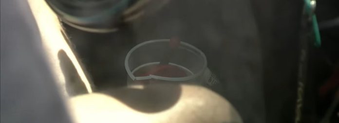 Luego de conocer el resultado, el hombre subió la ventanilla que daba hacia la vereda donde estaban las cámaras, que enfocaron hacia la puerta del conductor. Allí había un vaso de plástico, mientras él terminaba de entregar la documentación del vehículo.