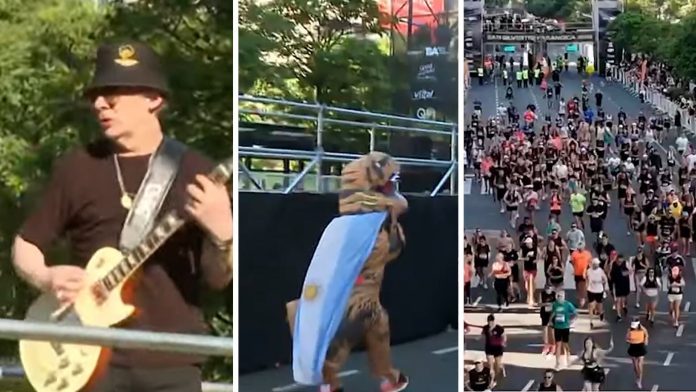 Sin embargo, no fue una edición cualquiera, ya que Juan Sebastián “Juanse” Gutiérrez musicalizó la previa de la largada, que tuvo lugar en Corrientes y 9 de Julio. De hecho, el evento se llamó “San Silvestre Paranoica” por la presencia del guitarrista y vocalista de la mítica banda Ratones Paranoicos. A metros de altura, el músico interpretó varios clásicos como Vicio y Cowboy.