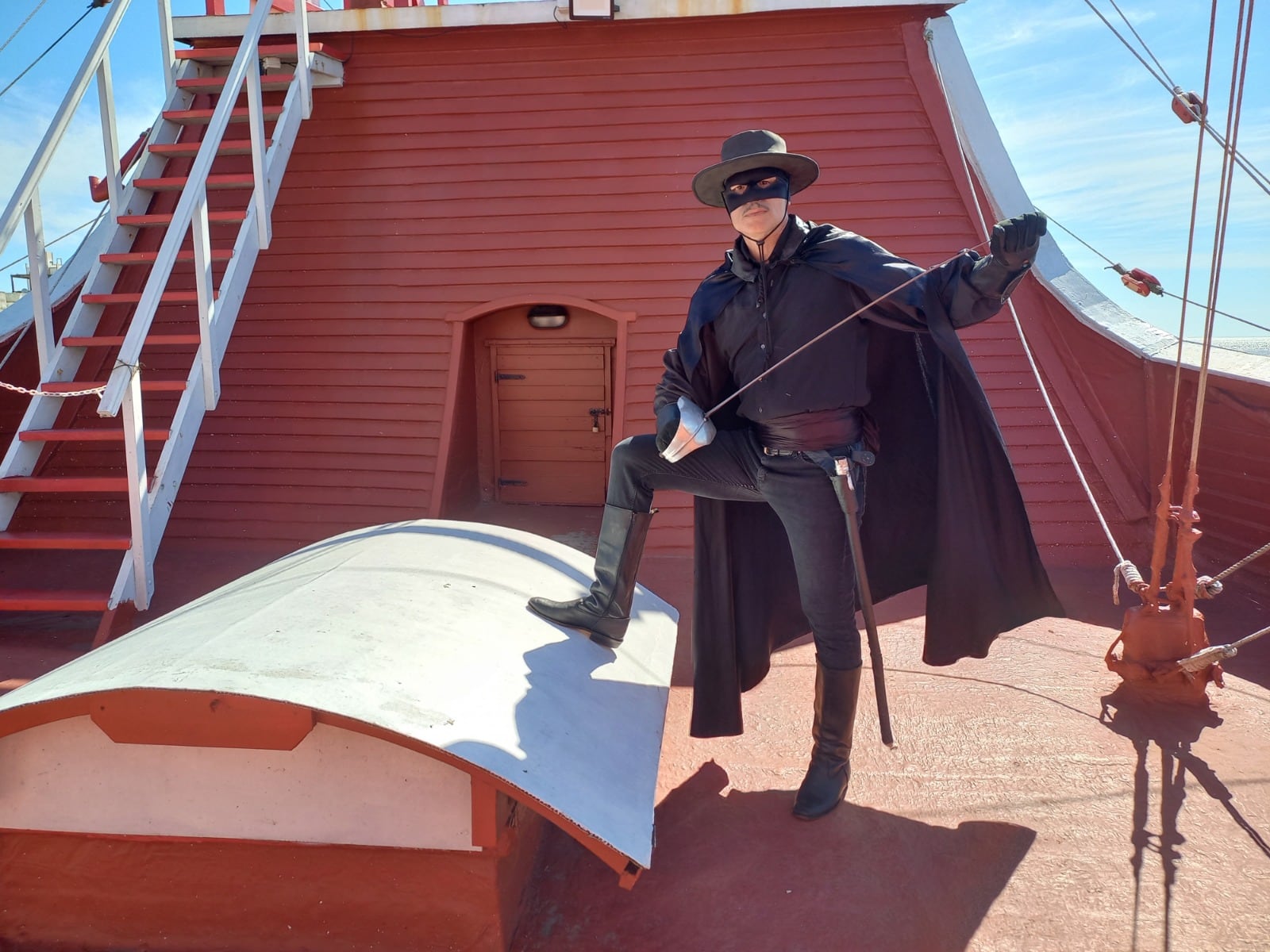 Usaba una capa que le había confeccionado una tía abuela cuando era adolescente y un sombrero que él mismo había preparado. Las botas también eran de sus tiempos adolescentes y la espada de utilería la había creado con sus propias manos. Supo definitivamente que ese proyecto iba encaminado en Mar de Ajó, cuando vio que se formaba fila para sacarse una foto con él.