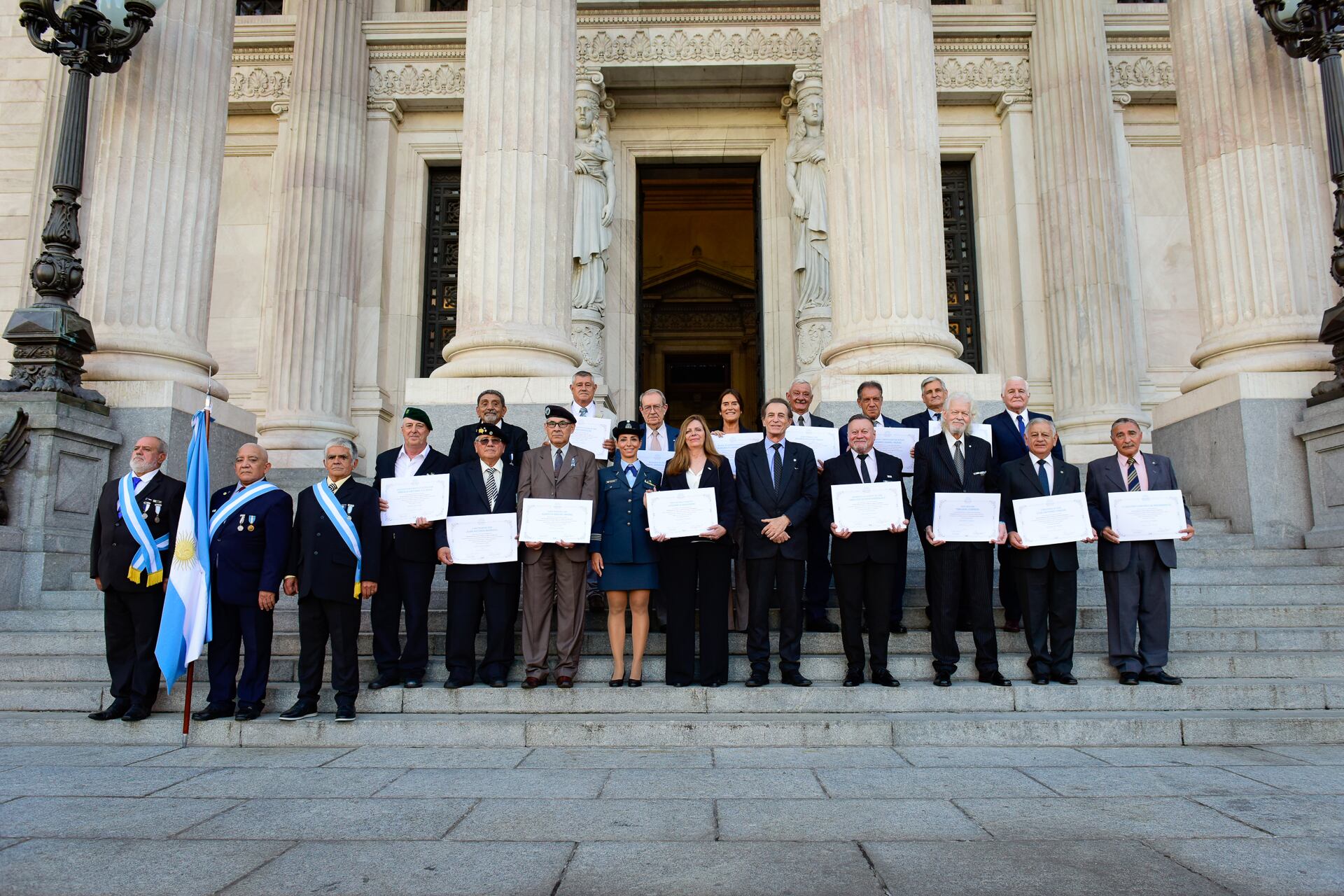 El cierre fue en las escalinatas del Congreso, con una foto grupal, en medio de los sones de la marcha de Malvinas y muchos “vivas a la Patria”. Como en 1982, cuando defendieron el suelo malvinero.