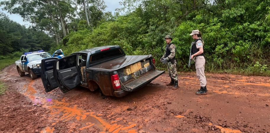 Al percatarse de la presencia policial, los individuos huyeron a toda velocidad por un camino de tierra, dejando atrás el vehículo y su contenido.