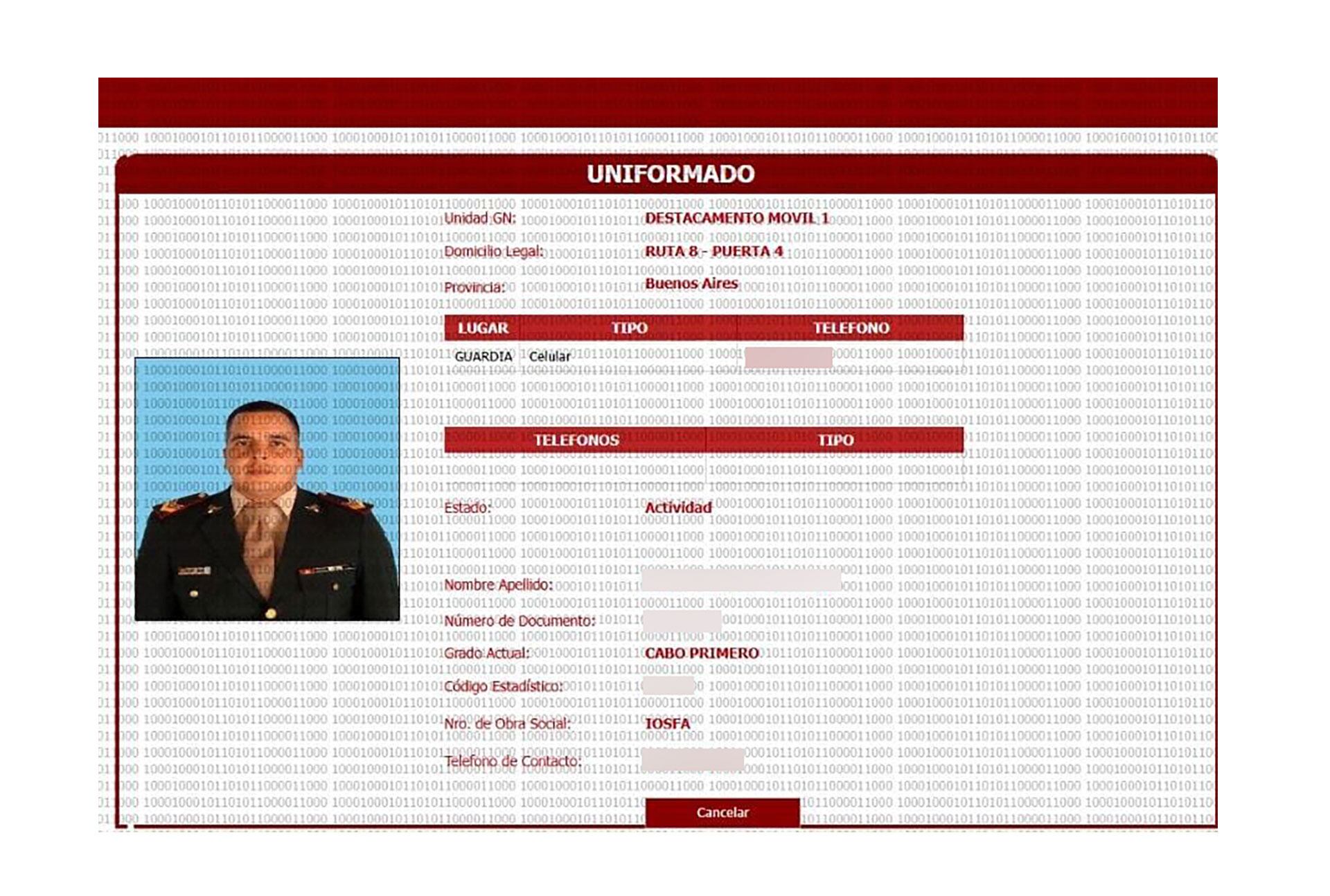 La ficha del primer gendarme detenido