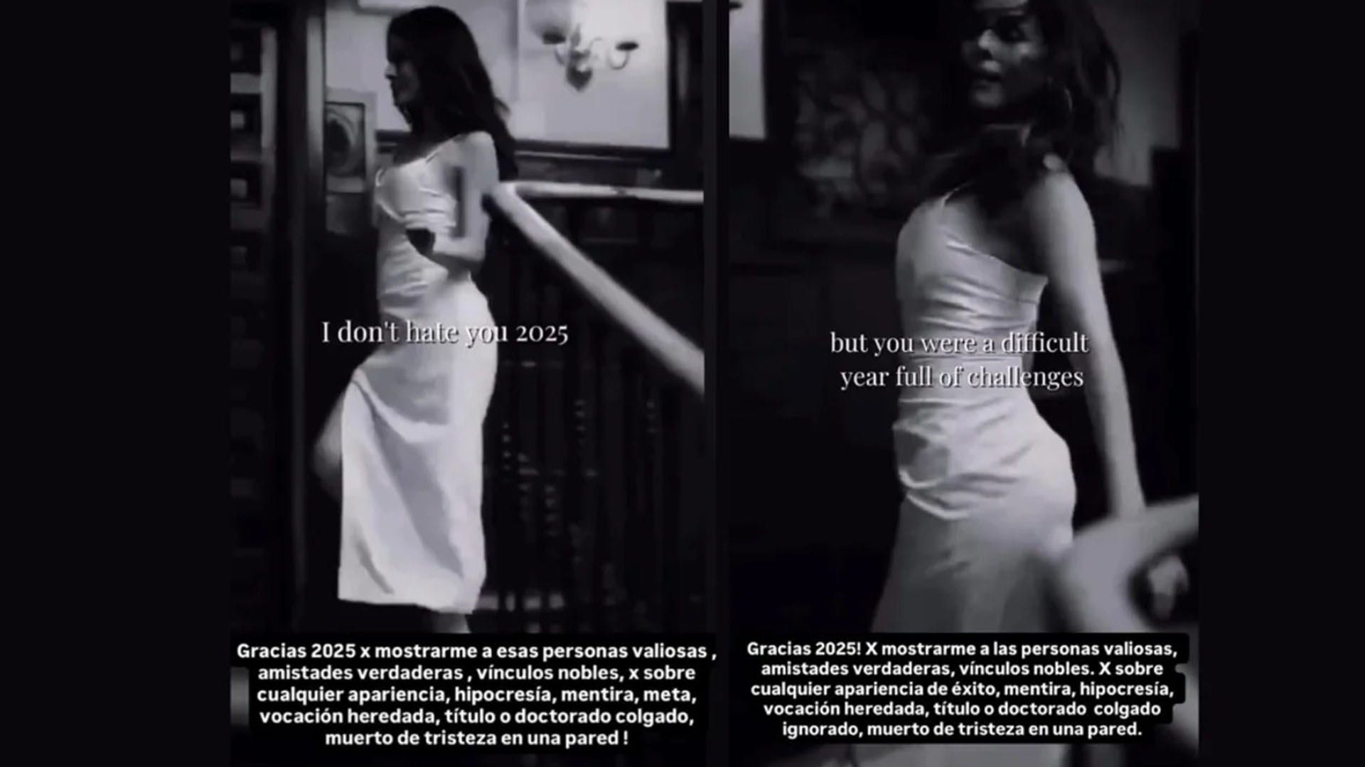 La captura es acompañada por la frase en inglés “I don’t hate you 2025, but you were a difficult year full of challenges”, es decir, ”no te odio, 2025, pero fuiste un año difícil, lleno de desafíos”.