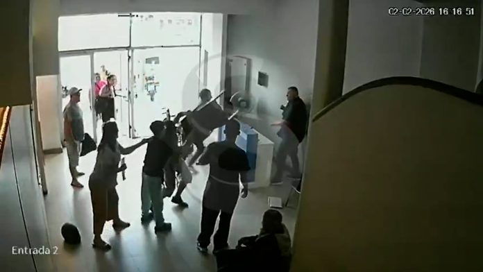 De inmediato, ambos comenzaron a golpearlo a las piñas, llegando incluso a atacarlo con sillas. Varias personas que se encontraban dentro del sanatorio intentaron interceder para frenar la agresión, aunque la violencia se prolongó durante casi un minuto.