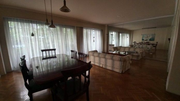 El departamento está conformado por hall de recepción, living comedor, balcón corrido al frente, cocina, lavadero, despensa, habitación de servicio con baño, comedor diario y un área privada con tres dormitorios y baño completo. En las fotos que acompañaban el anuncio de la subasta se mostraban espacios amplios y luminosos, la cocina equipada y dormitorios con placares espejados y pisos de parquet, además de mobiliario de época.
