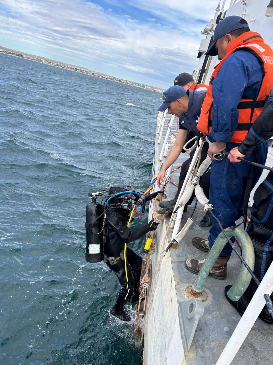 El operativo de búsqueda, coordinado por la Prefectura Naval Argentina, se desplegó en la zona de Punta Cuevas y en el área del Parque Submarino “HU SHUN YU 809”. La fuerza envió un medio de superficie con un nadador de rescate y sumó un guardacostas con personal especializado en buceo, perteneciente a la Estación de Salvamento, Incendio y Protección Ambiental de la Prefectura.