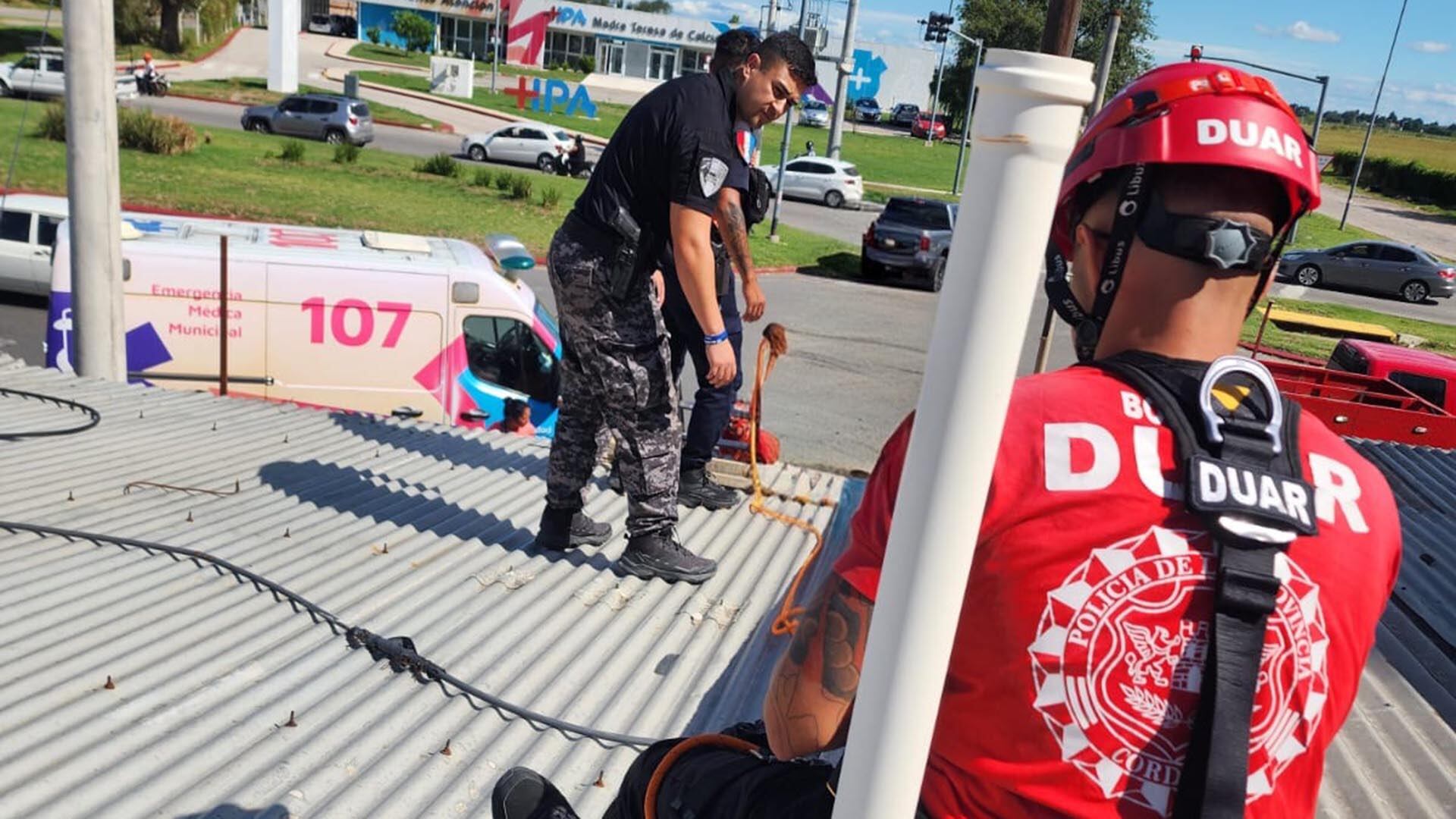 Hasta el lugar acudieron efectivos del Departamento de Unidades de Alto Riesgo (DUAR), quienes desplegaron un operativo especial de rescate. Utilizando técnicas específicas para trabajos en altura y elementos de seguridad, lograron asegurar al herido, inmovilizarlo y descenderlo de forma controlada para evitar mayores lesiones.