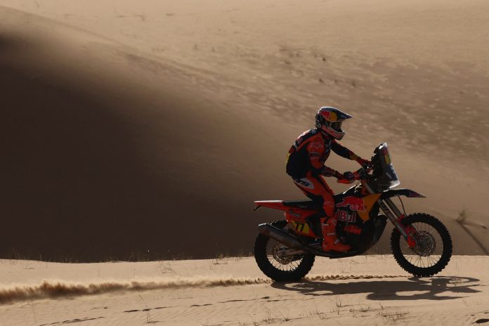 (Enviado especial a Arabia Saudita) El argentino Luciano Benavides a bordo de su KTM 450 Rally del equipo oficial volvió a liderar la clasificación general de motos, pero fue por una jugada estratégica de su principal rival, el estadounidense Ricky Brabec (Honda), quien levantó en el final de la undécima etapa. Esto le valdrá al estadounidense largar mañana detrás del salteño, quien agarrará un recorrido más sucio.