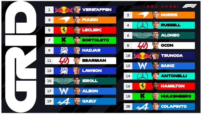 Con Verstappen en la pole, así quedó la grilla de largada para la carrera del Gran Premio de Abu Dhabi (Foto: @F1)