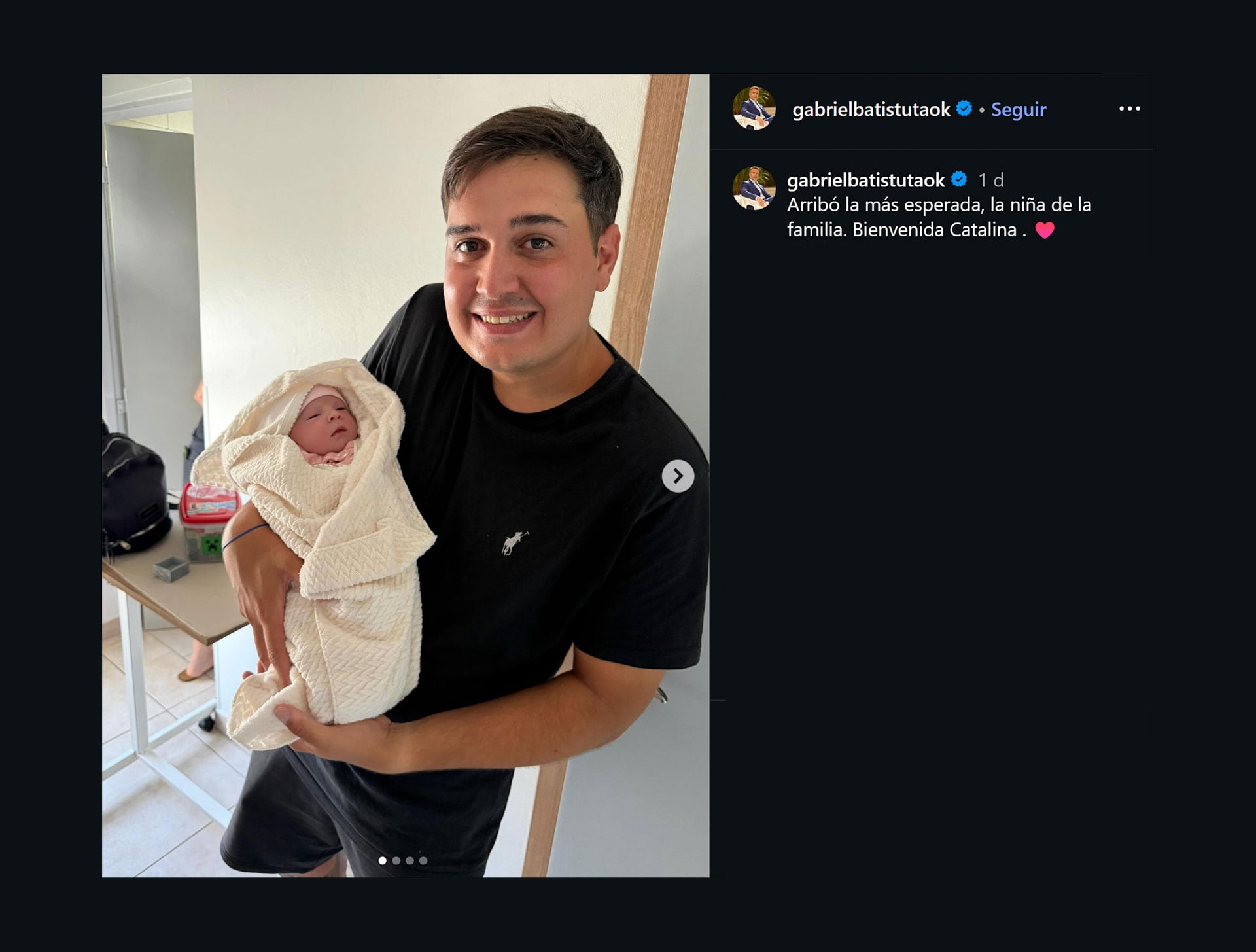 La publicación en Instagram incluyó varias fotos con la niña recién nacida y una imagen de la pequeña en su cuna. Rápidamente, los comentarios de sus seguidores se llenaron de felicitaciones y mensajes afectuosos: “La nieta del Rey León”, “Felicidades Batigol”, “Qué hermosa Catalina. Muchísimas felicidades para la familia Batistuta”, “Hermosa esa princesa ” y “Bendiciones”.