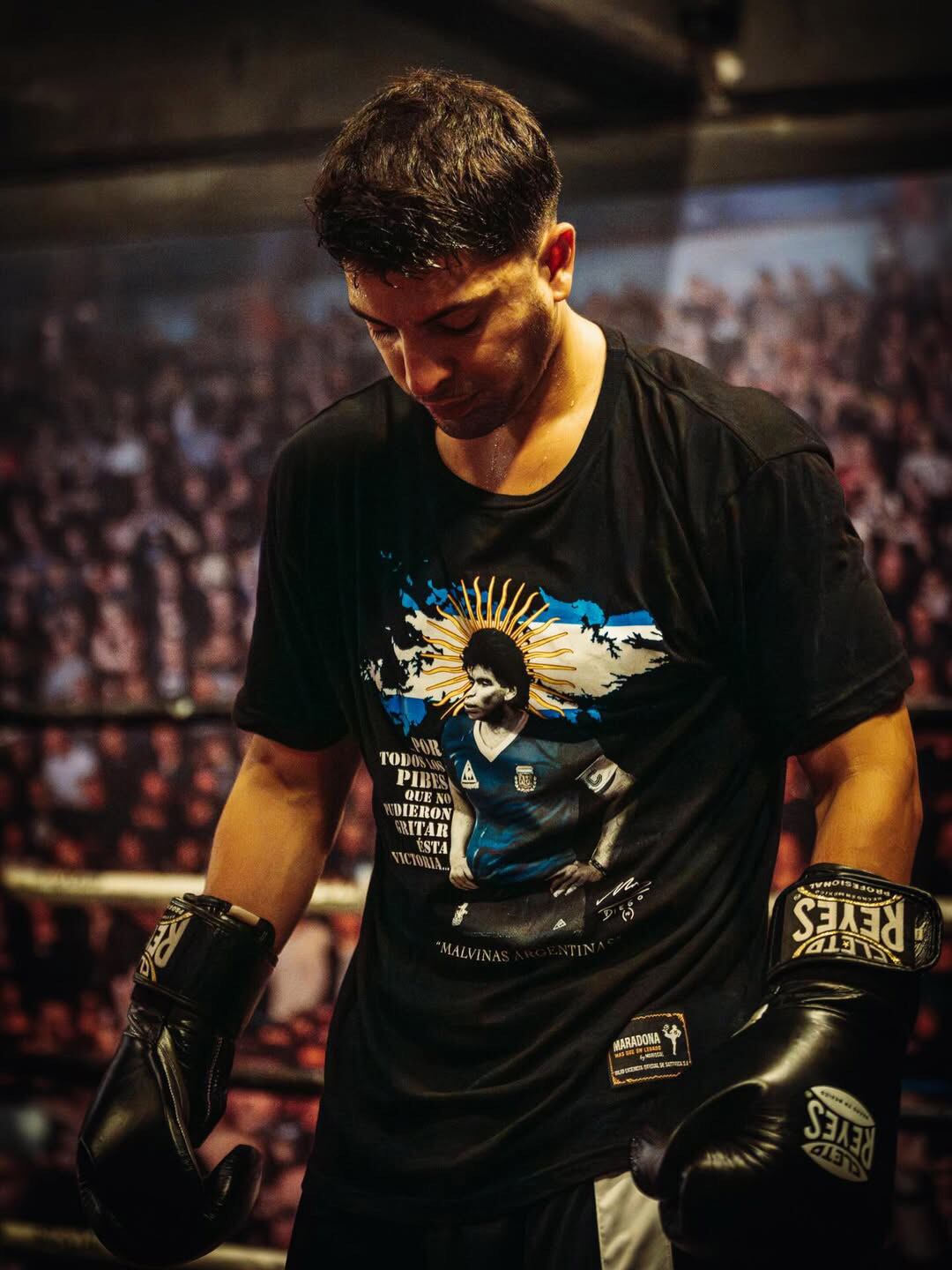 A esto, sumó: “No hay un solo argentino, un solo latinoamericano, que cuando lo llamen y le ofrezcan defender y representar a su país diga que no. Por eso, pese a que esto no tenga que ver con mi carrera, estoy aquí y voy para adelante”. En la presentación de la pelea, Gastón Edul sorprendió con un detalle particular: utilizó una remera de las Islas Malvinas con los colores celeste y blanco.