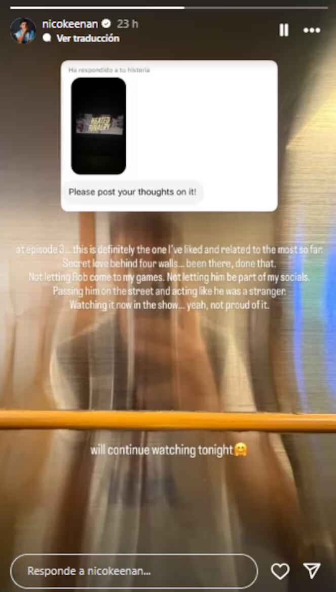 A principios de enero, el jugador de 28 años había mostrado en sus redes personales que estaba mirando la serie dirigida por Jacob Tierney y uno de sus seguidores le preguntó por su opinión. En este sentido, subió la consulta en una historia de Instagram y marcó cuál fue el mejor capítulo bajo su mirada: “El episodio 3 es definitivamente el que más me ha gustado y con el que más me he sentido identificado hasta ahora. Amor secreto entre cuatro paredes… ya pasé por eso”. “No dejar que Rob viniera a mis partidos. No dejar que fuera parte de mis redes sociales. Cruzarme con él en la calle y actuar como si fuera un desconocido. Verlo ahora en el programa… sí, no me siento orgulloso de eso”, concluyó.