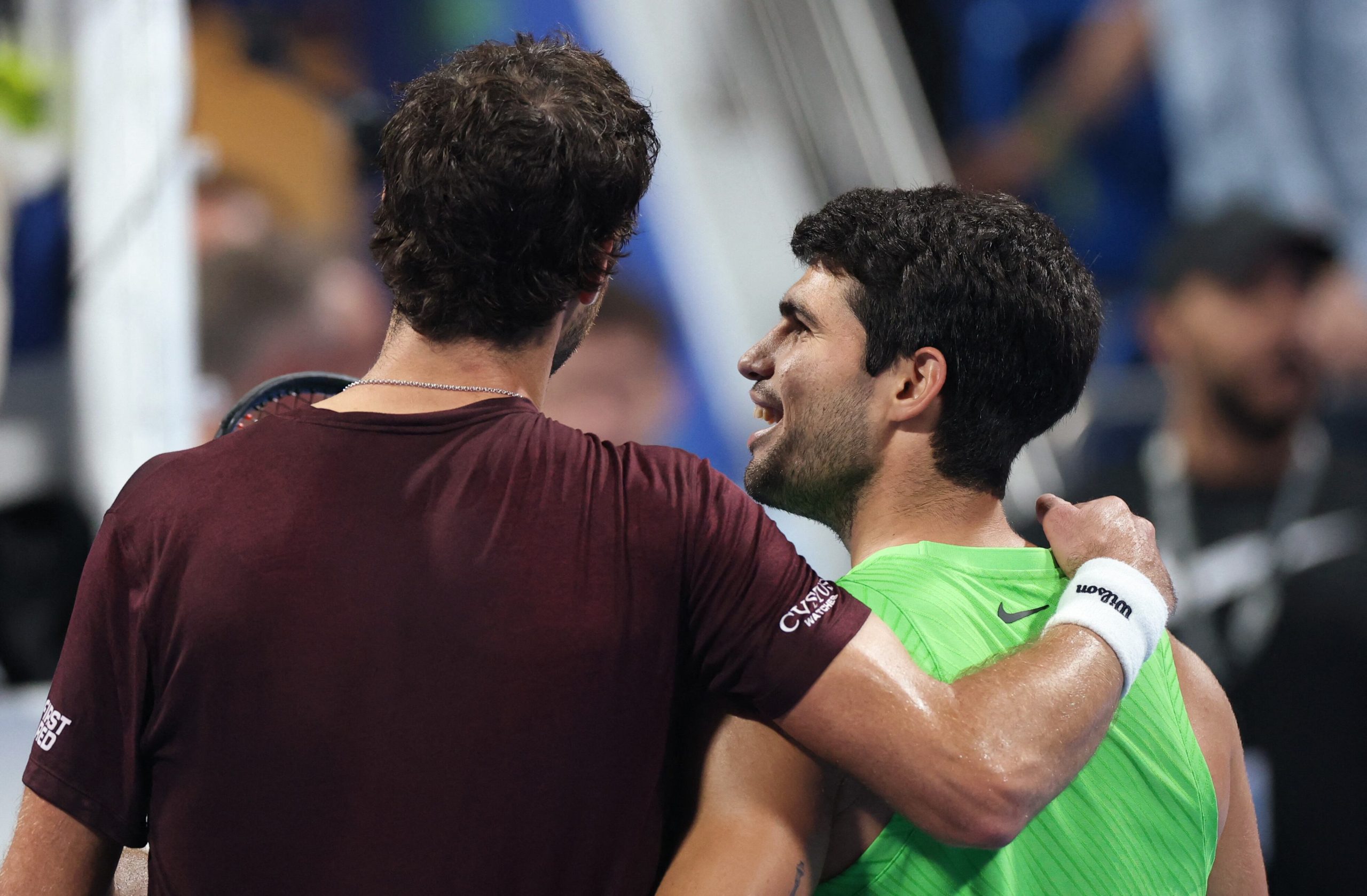 El intercambo entre Karen Khachanov y Carlos Alcaraz (REUTERS/Mohammed Salem)