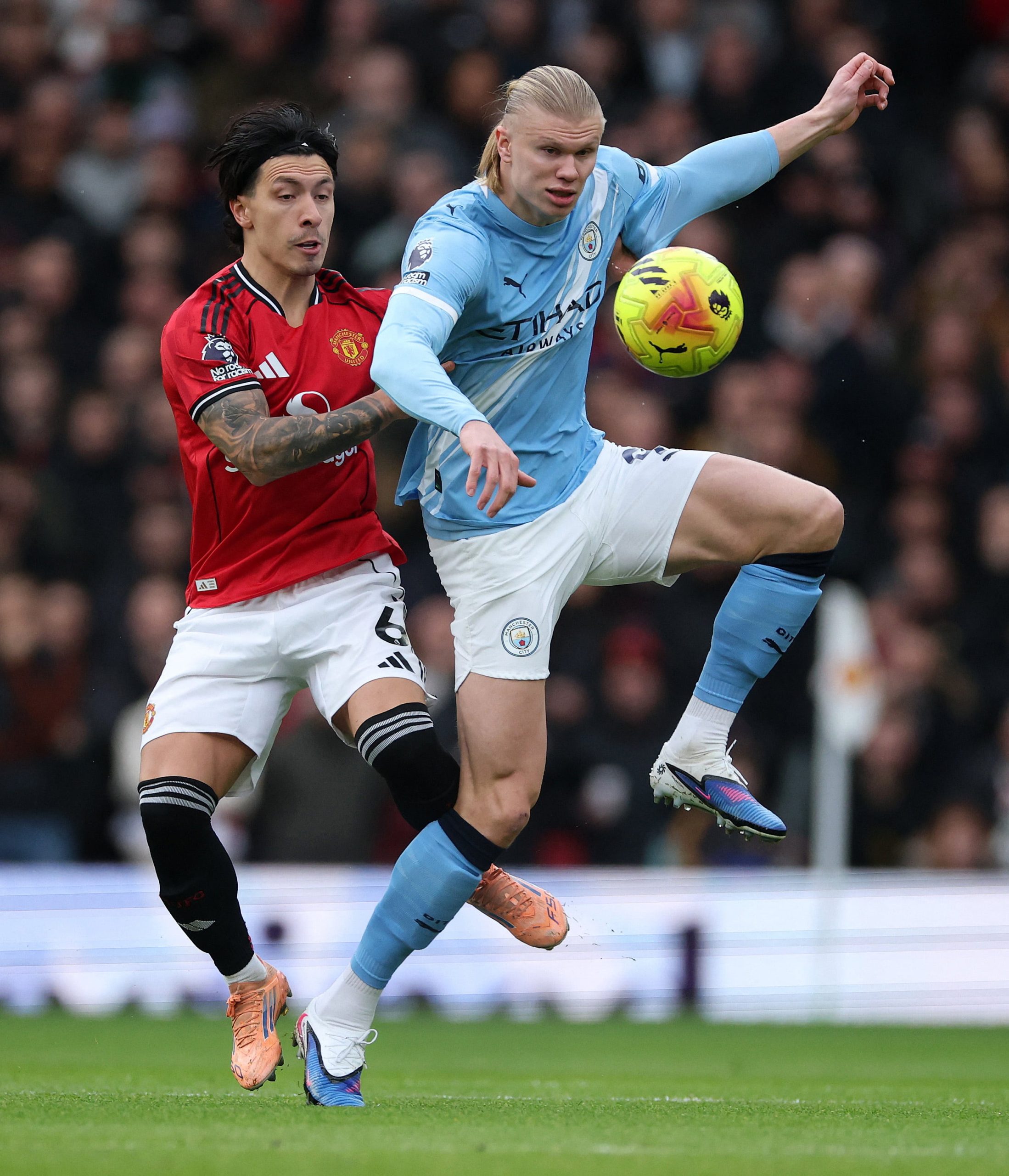 Lisandro Martínez anuló las opciones de Haaland (REUTERS/Phil Noble)
